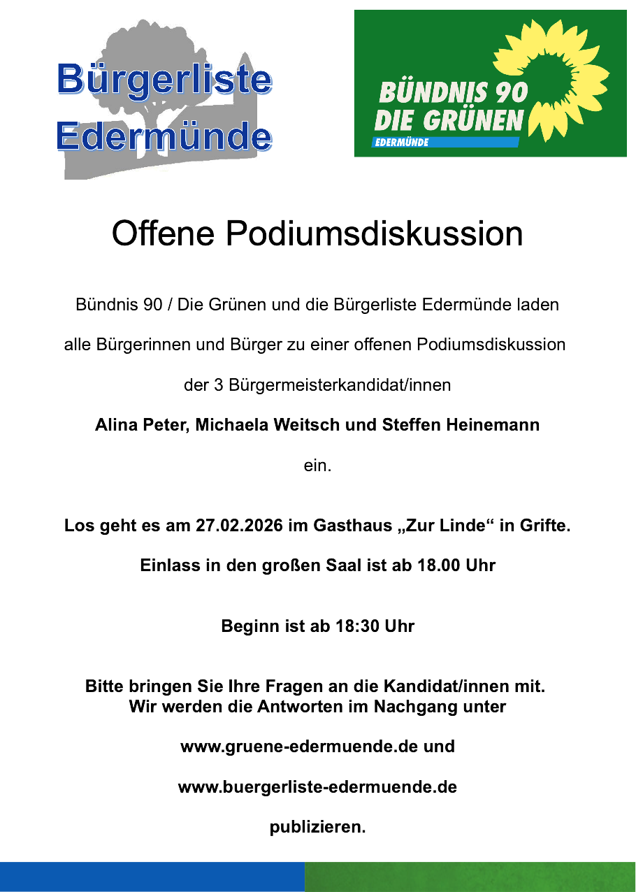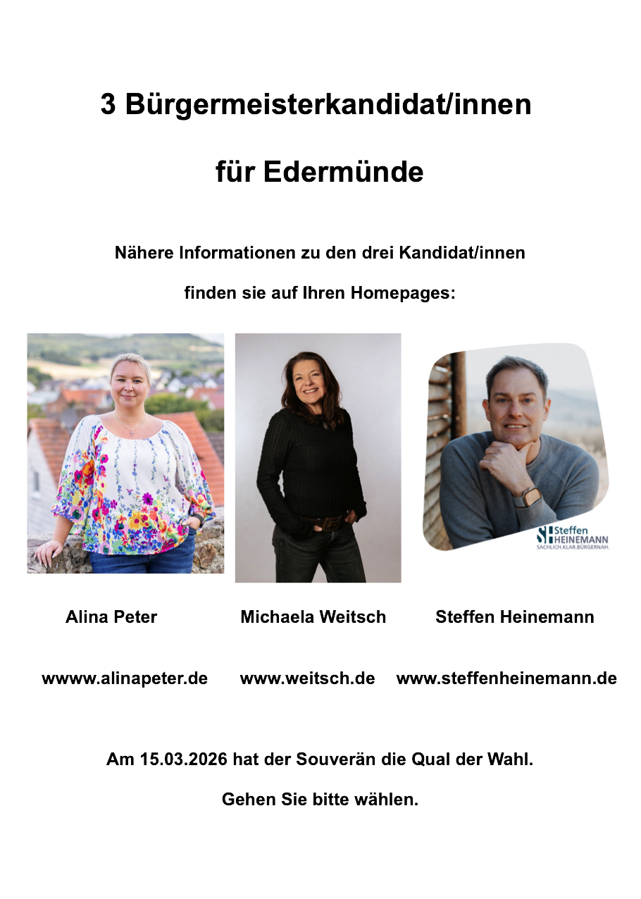 Es liegt nun an den Bürgerinnen und Bürgern, am 15. März 2026 über neue politischen Mehrheiten zu entscheiden. Die Bürgerliste Edermünde steht bereit.