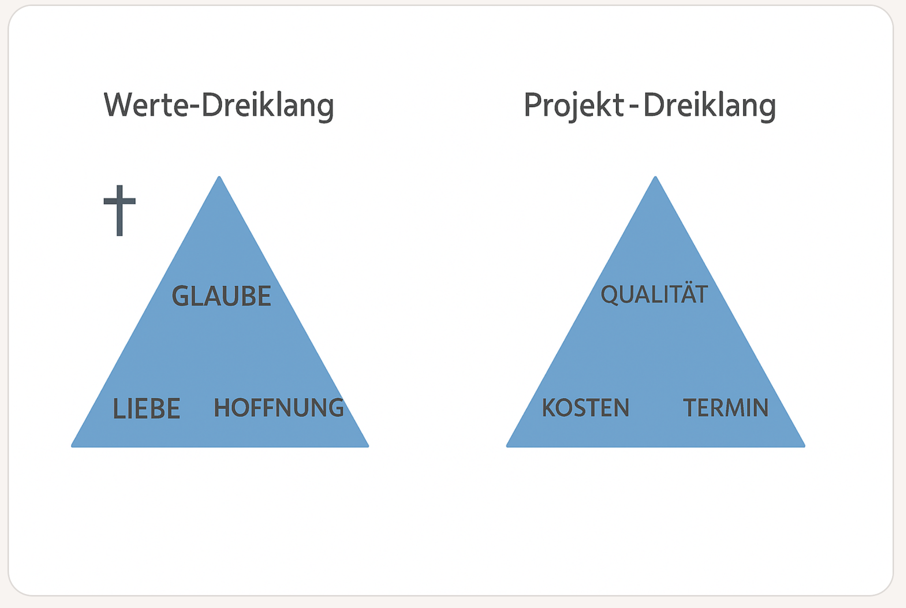 Für die Vertreter der klassischen Tugenden könnte man auch Q, K und T mit Glaube, Liebe und Hoffnung gegenüber stellen.