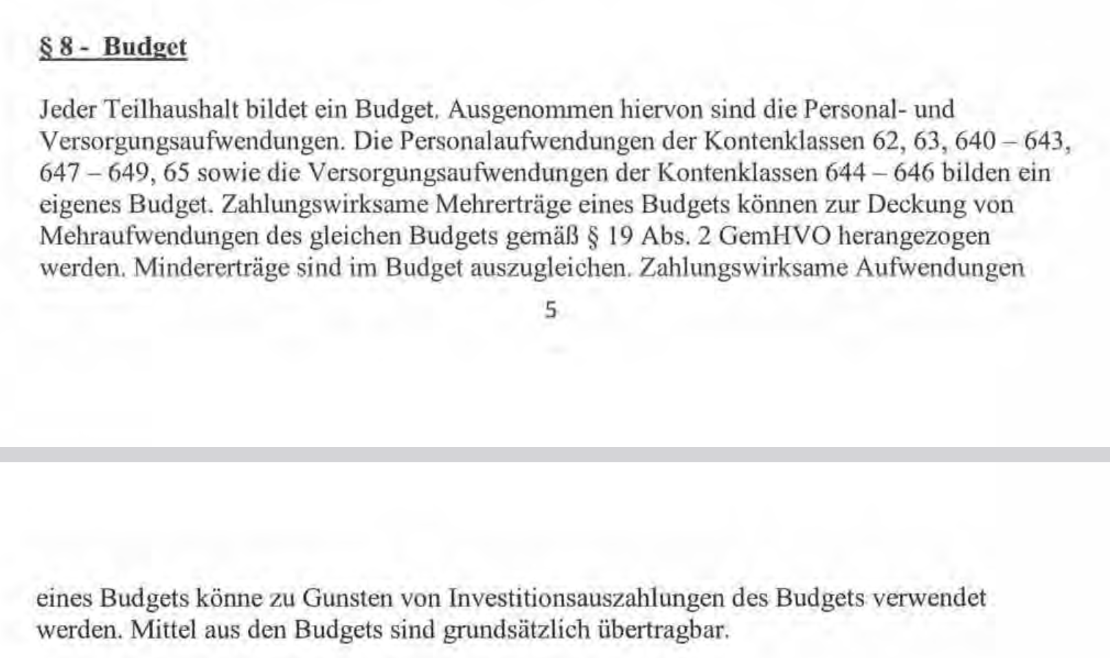 5) das der Vorsitzende der Gemeindevertretung die zeitliche Einbringung von Haushaltsplan und Nachtragshaushaltsplan nach eigenen machtpolitischen Interessen durchführt.